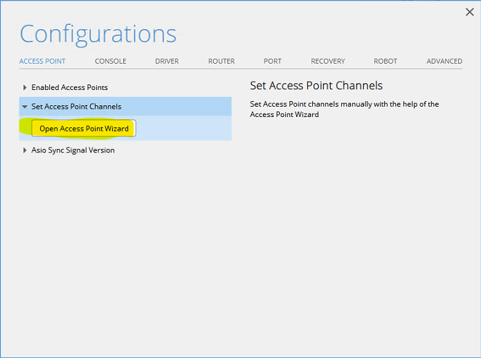 3. Click on the Access Point tab, expand "Set Access Point Channels", and click "Open Access Point Wizard"